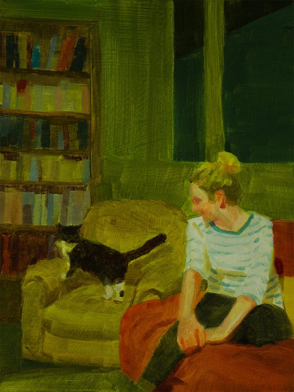 Caroline Ji is a self-taught artist currently based in Toronto, Canada. She paints people around her, and her memories and thoughts surrounding immigration, gender equality and its power dynamics, cultural identity, emotional capacity all contribute to the narrative in her work. She received her BASc in Electrical Engineering from the University of Waterloo in 2012. Her paintings are collected in private collections across Canada, USA, Asia, and Europe. She has exhibited in Canada, USA, and Australia.